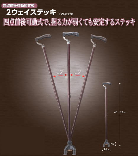 【非課税】【4点杖】四点前後可動・固定式 2ウェイステッキ(ユーバ産業)TW-0128【送料無料】【敬老の日】