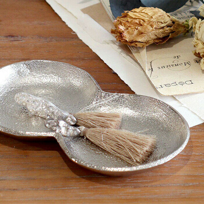 メール便 トレイ アルミ おしゃれ アクセサリートレイ 小物入れ Creer santolina サントリナ 92150020 ラウンドダブルトレイ トレー オーバル 小皿 アクセサリー 収納 指輪 リング ネックレス 雑貨 イヤリング ジュエリー 送料無料
