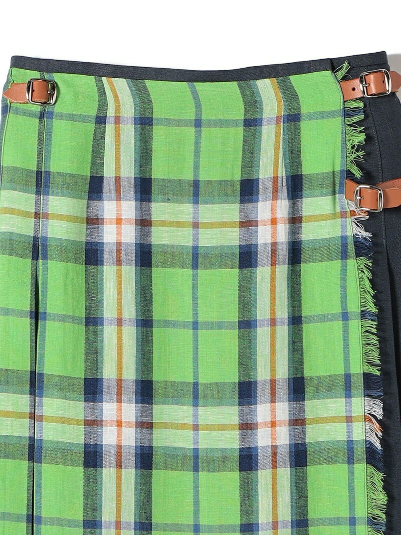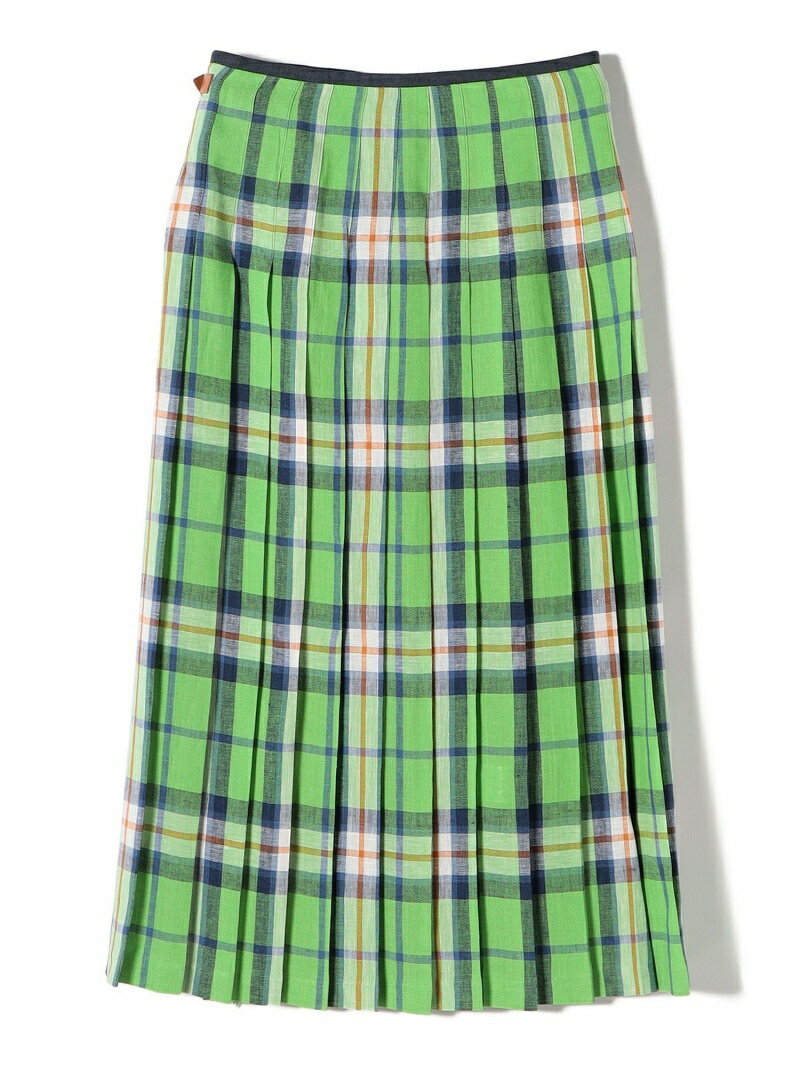 SHIPS(シップス)ONEIL OF DUBLIN:コンビネーションキルトスカート鮮やかなグルーンチェックが目を惹くプリーツスカート。
