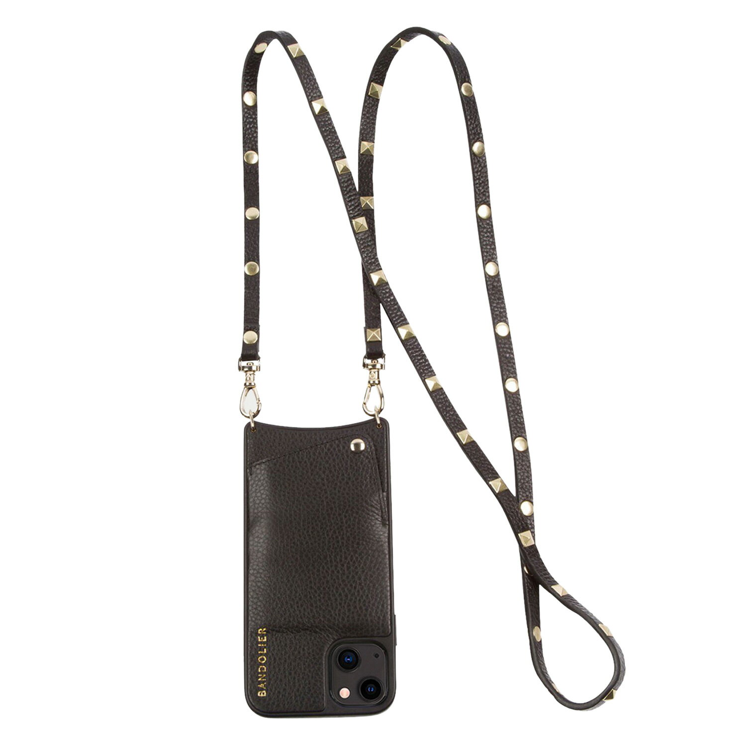 商品説明 【セレブ愛用者急上昇中のiPhone専用アクセサリーブランド BANDOLIER】 ファッションに華やかなアクセントを加えるピラミッドスタッズ付きストラップデザインのサラスタイルです。